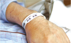 入院時に本人確認のためネームバンドを装着させていただいております。注射・点滴・薬をお渡しする時、また、手術・検査・処置を行う際に、その都度確認させていただきます。