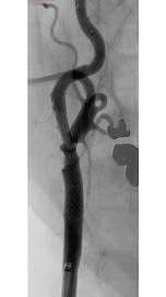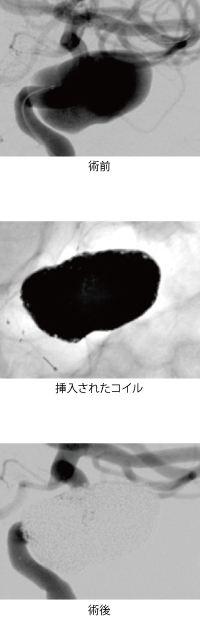 25mmを超すような巨大脳動脈瘤や部分血栓化脳動脈瘤は現在でも治療が困難とされています。我々は各種テクニックの集約によりこれらの難治性動脈瘤にも積極的な治療を行い、良好な成績を報告しております。