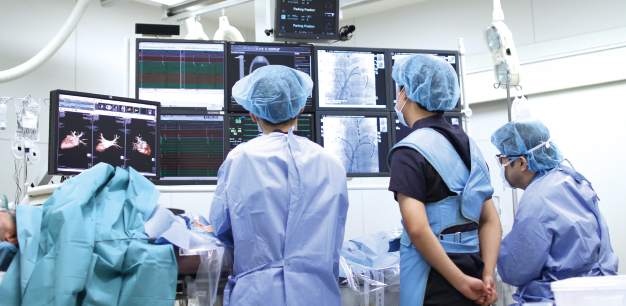 小倉記念病院では現在カテーテルアブレーション治療を専門の医師4人とME、看護師、修練医でアブレーションチームとして毎日治療を行っています。また、カテーテルアブレーション治療では新しい技術が多く導入されてきており、日本でもそういった治療を受けることができるようになってきています。心房細動だけでなく、カテーテルアブレーション治療において技術の進歩はめざましく、我々小倉記念病院不整脈チームもよりよい治療を目指して、日々励んでいます。