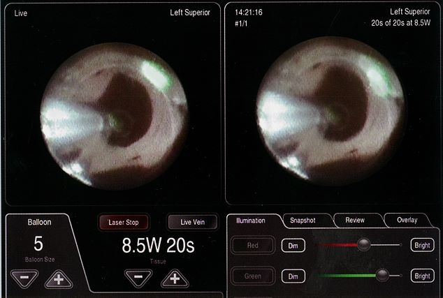 レーザーエネルギーとバルーンサイズの調整により、様々なシチュエーションに対応できます。バルーンを動かすことなくレーザー焦点調整を行えると共に、組織の厚さによってエネルギー量の調節が可能となりました。