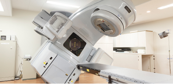 放射線治療装置(リニアック)は、エックス線や電子線などの放射線を当てて、がんの治療をする機器です。病気の部位に到達するまで体を切り開かなければならない手術に比べて、正常な組織へのダメージが少なくそれらの機能を残したまま治療でき、体への負担も最小限ですみます。