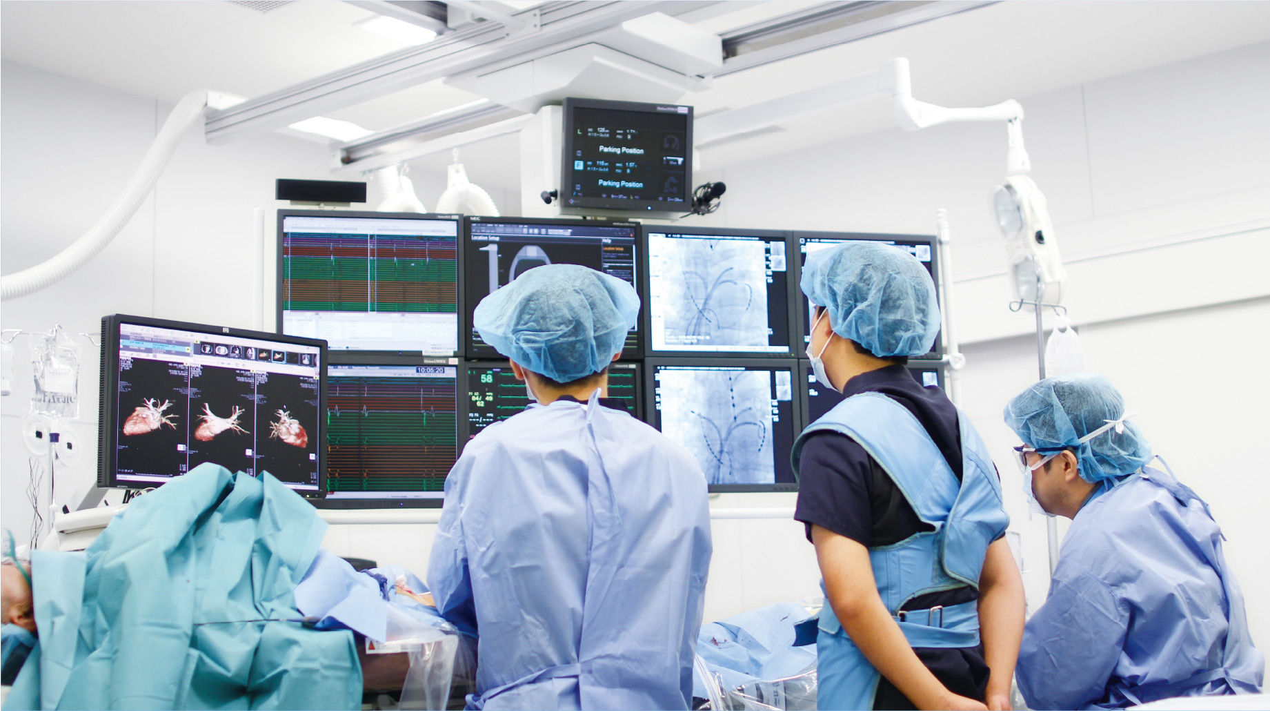 ペースメーカ、ICD、CRT-D等のデバイス植え込み術を年間約600例施行しており、不整脈に関する侵襲的治療のみならず、心電図の読影、不整脈に関するコホート研究、臨床治験を通じて幅広い不整脈の知識を吸収できることが当院の特徴です。