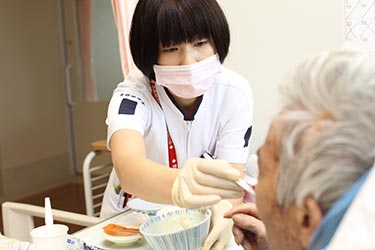 私が当院へ入職した時は言語聴覚士不在の状況でした。言語聴覚士という職種がどのような仕事をするのか浸透されていない中、主に嚥下障害に対しての関わりは模索しながらの毎日でした。また多数の嚥下障害の患者様に対し言語聴覚士1名でどの程度まで介入できるのか悩む日々でした。知識不足・経験不足もあり失敗や反省も沢山ありました。しかし3年が経過し多くの言語聴覚士オーダーを頂くようになり評価の内容や病棟への伝達、食事の変更やゴール設定など他部門と協力し徐々に言語聴覚士としての業務が定着してきています。