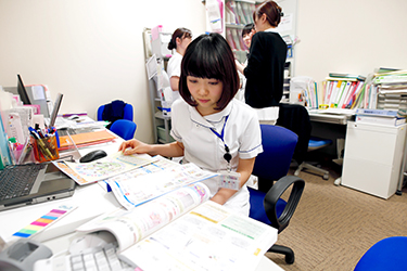 健康管理センターで保健師として働くことで、一般のお客様や当院の職員さんなど、日々多くの人と関わることができる楽しさを感じています。保健指導では約30分間、目の前の対象者の方と1対1でじっくり向き合うことができるのが魅力的です。保健師や保健指導に対しての印象が悪くなってしまわないよう、相手のキャラクターや考え方に合わせ、できるだけ楽しくお話するよう心掛けることで。自然とコミュニケーション力が磨かれます。「これならやってみようかな」と思ってもらえるためにはどんなサポートが良いか考えながら関わっていく中で、少しでも良い反応が返ってきたときは嬉しいです。