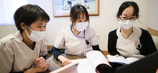 小倉記念病院は、手厚い新人教育、その後のフォロー研修、学会発表・院外研修費用の支援など、看護師・保健師が学び続けられる環境にあります。さらにドクターによるセミナー等の開催、教育委員や認定看護師の方々の活発な活動により、配属科以外の分野や最先端の医療を自然に感じることができます。また産休・育休・時短勤務制度などライフステージに沿ったサポート体制があります。私自身、これらを活用させていただいていることに加えて、仕事以外の状況に配慮して頂いた時期があります。現在も家族をはじめ、多くの方に助けられ、働き続けることができています。