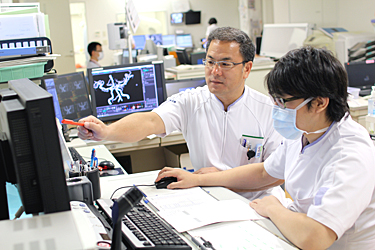我々、診療放射線技師は、医療の最前線に立ち、チーム医療の一員として患者様の命をあずかる大切な仕事です。放射線検査や治療で使われる機器は日々改良されて新しいものが登場してきます。学会や研究会に参加し、最新の技術を習得し、新しい知識や技術を積極的に学ぶことで、日々の業務において結果を残せる喜びにつながります。医師が求めている画像を提供し、その画像が患者様にとって最高の結果を提供できたとき最高のやりがいを感じます。