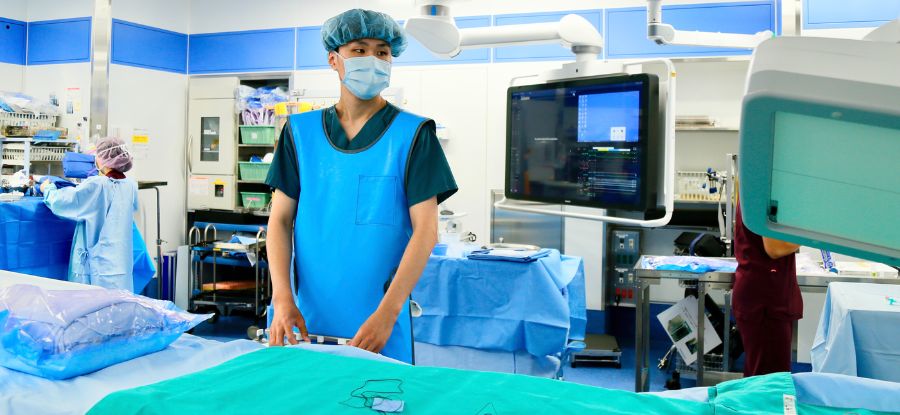 私は現在、ハイブリッド手術室で業務を行っています。ハイブリッド手術室では、医師、看護師、臨床工学技士、診療放射線技師が個々の専門性を高めたチーム医療のもと治療を行います。他職種とコミュニケーションをとる中で意見を求められる機会が多く、自分の意見が採用されたり「ありがとう」と言われた時にやりがいを感じます。その背景には、過去にもっとこうしておけばよかったと思う経験や逆に工夫してよかったと思う経験があるからです。何事も経験は財産であり、実際に行動に起こさないと手に入れることはできません。尊敬する父の教えである実践躬行という言葉のもと、今日も自ら考え自ら実行します。