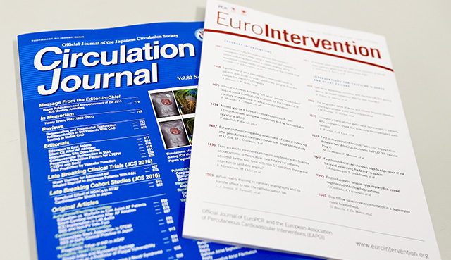 海外の学術誌にも当院循環器内科医師の論文が毎年多く掲載されます。日本でも多くの臨床データが集まる当院は、臨床研究を進めることも一つの役割だと考えています。統計学の学者も交えながら、データ収集・解析を約半年間積み重ね、医療の発展のために、論文作成に取り組んでいます。