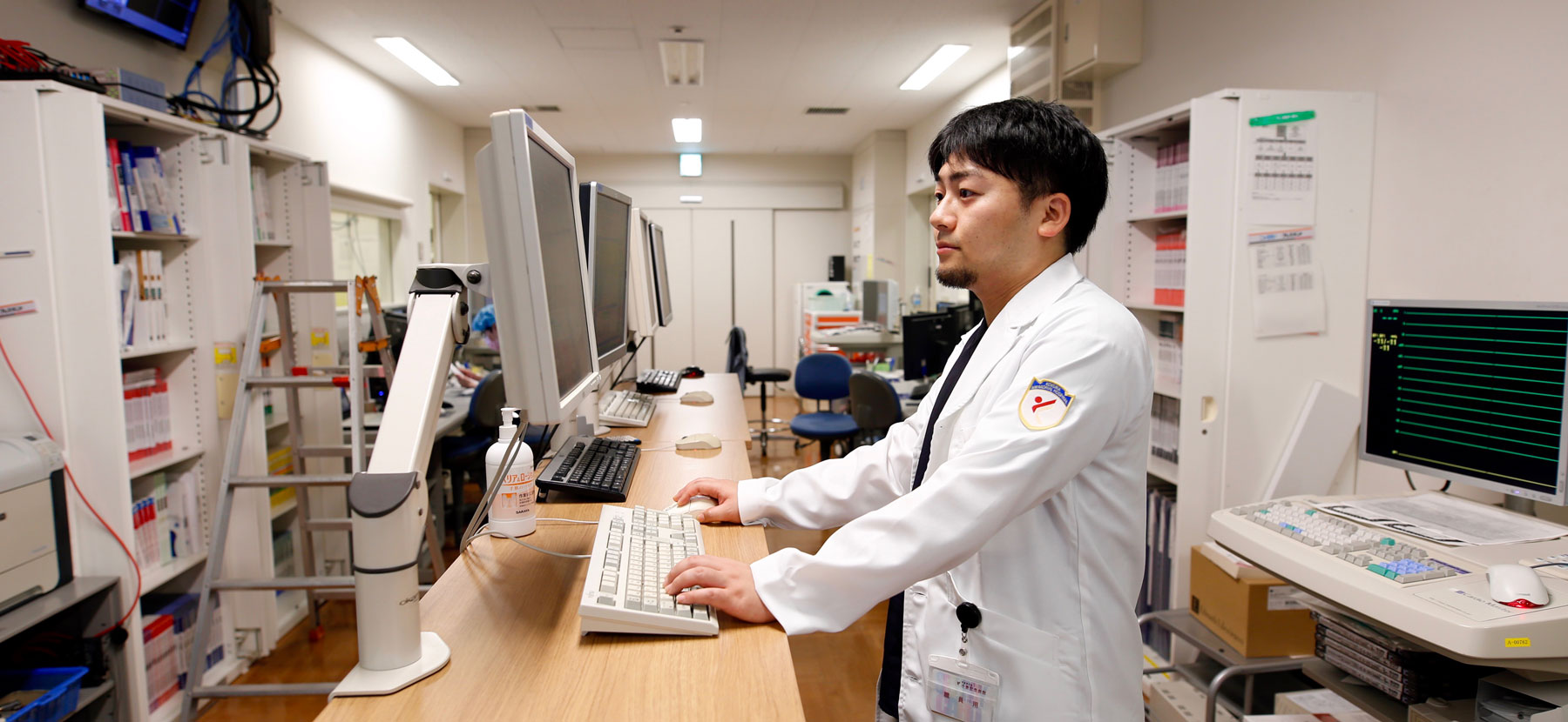 私は初期研修・後期研修の5年間を神戸の病院で過ごし、その後の進路に小倉記念病院を選びました。循環器内科のメッカとして非常に多くの症例を経験できることはもちろん、冠動脈疾患・末梢血管疾患・不整脈・構造的心疾患・心不全等、各分野の第一人者として活躍されている先生方がおられるということが非常に魅力的です。まだ実際に働き始めて数ヶ月といったところですが、6つのカテーテル室はほぼ常時フル稼働しており、自分の症例以外にも興味のある症例にはいつでも勉強をしに行くことができます。どの上級医の先生も非常に気さくで指導的で、どんどん相談してその考え方や技術を盗みたいと思わせて下さいます。