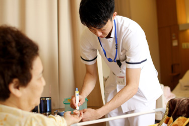 私の配属された病棟は循環器内科と血管外科の混合病棟ですが、この病棟は末梢血管系の患者さんを中心に看ています。例えば早出業務では血管外科の患者さんを中心に朝の回診で創部の状態の観察と処置を行います。そして日頃からフットケアを実施して常に清潔を保つようにしています。患者さんには退院後にも自身でケアに取り組んでもらえるよう、その指導も行っています。