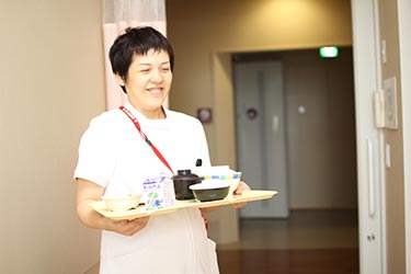 早出は7:00出勤と朝が早く、若い時はきつい時もありました。配膳・配茶から始まり、患者さんの検査やリハビリのための搬送で行ったり来たりと歩き回るので体力が必要な仕事だと思います。新病院になってからは、患者さんの洗髪や清拭、おむつ交換等のケアもできるようになり、患者さんとの距離が一層近づきました。患者さんの傍で元気になっていくのを感じることができ、退院後に外来で「元気になったよ?」と声をかけられたりすると嬉しくて、私たちも回復へのお手伝いをしていると思うとやりがいを感じます。