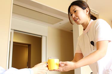 私達、看護助手は入院患者さんが快適に入院生活を送れるように日々生活面でのお手伝いをしています。配膳、検査時の搬送のお手伝い等を行っていくことで患者さんとの信頼関係を築いていくことができ、日々体調が良くなっていく患者さんを見て「私も、すこし役に立てたのかな?」という気持ちになります。その中で患者さんから、「ありがとう」や「ご苦労様」と声をかけていただく事もあり、その時は何とも言えない喜びを感じます。