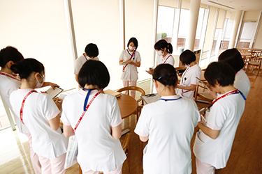 看護助手科は科長を軸に約60名で構成されています。勉強会など充実しており多くのことを学ぶことができます。また、何か起こった時に一つになり協力体制を発揮できる思いやりのある心強いチームです。新入職者の中には未経験の方もおり、指導に悩む時のありますが、こちらが学ばせて頂いているという気持ちで相手の立場に立った指導を心掛けています。 出来る事が一つづつ増え成長していく姿を見て大変嬉しく思い、自分自身の糧となっています。