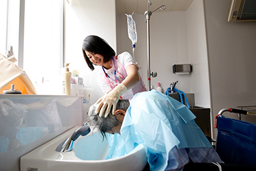 人と関わり接することが好きな私が進んだ道は看護助手でした。血液内科では治療と戦う患者さんに心で寄り添う介護を学び、個室対応病棟では患者さんや家族に対して相手の立場に立った接遇を多く学びました。