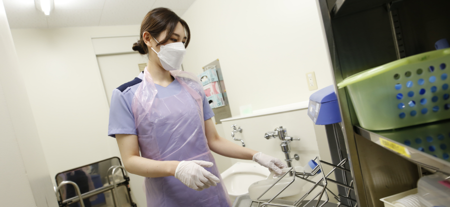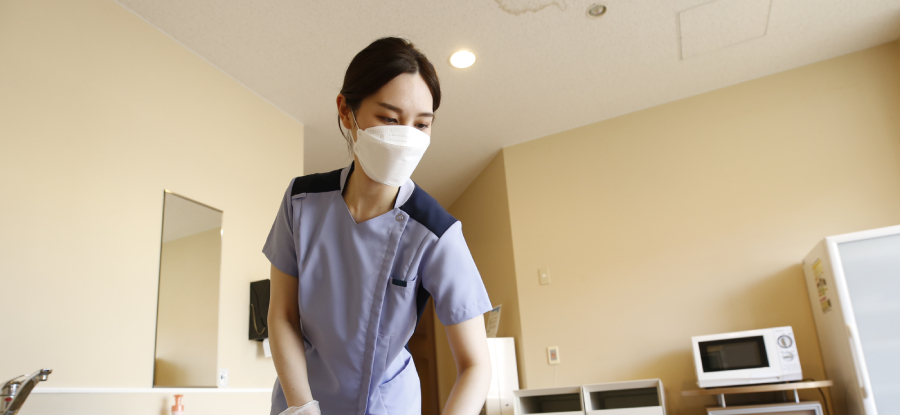 「人の役に立ちたい」と思う気持ちがあれば大丈夫です。看護助手は看護師のサポート業務・患者さまの身の回りのお世話が中心です。看護師や患者さまから感謝の言葉を頂くたび人の役に立てていると感じられ、とてもやりがいが得られます。年齢層も幅広く、無資格未経験でも医療現場で活躍できます。実際、私自身、無資格無経験者で入職しました。最初は不安で何もわからない私に、指導してくださった先輩方の親切で丁寧な対応のおかげで不安も解消されました。安心して仕事に取り組むことのできる職場です。