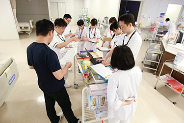 特に重症患者さんでは栄養の問題を多く抱えた患者さんも少なくありません。経口摂取が困難で経腸栄養や輸液管理の患者さんの食事としての栄養を考えることも私たちの役割です。他スタッフと協力し個々の患者さんの問題解決に努めています。治療の一環としての栄養のサポートが出来ること、そこにやりがいを感じています。