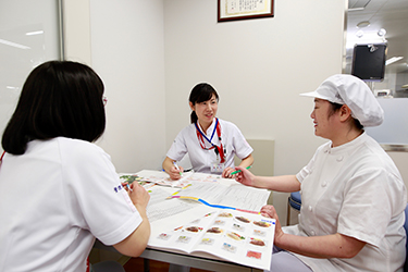 「食べることは生きること」管理栄養士は食と栄養を通して患者さんへのサポートを行っています。当院は急性期病院であり疾病の予防や重症化予防、栄養治療など多岐にわたる場面で食事や栄養の調整が必要となります。