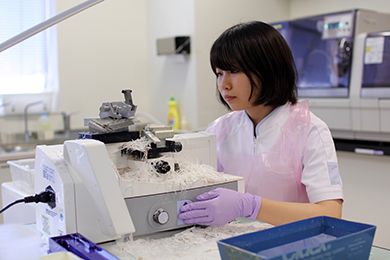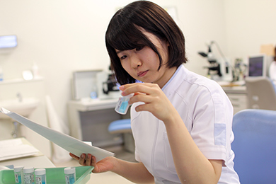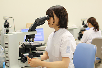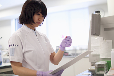 私がこの病院に入職したのは、関心のある分野について詳しく学び働きたいと考えたからです。先輩方に助けられながら仕事をする中で、患者さんの大事な検体を扱っていると自覚することが第一であると思い知りました。現在は業務を一人前にこなせるようになるため、日々先輩方の指導を受けています。毎日課題に直面しますが、ひとつずつ解決し多くの人から吸収し、専門分野についての知識や技術を身につけてゆきたいと考えています。そして、患者さんのための検査であることを忘れず、診断に貢献できる臨床検査技師になることが私の夢です。