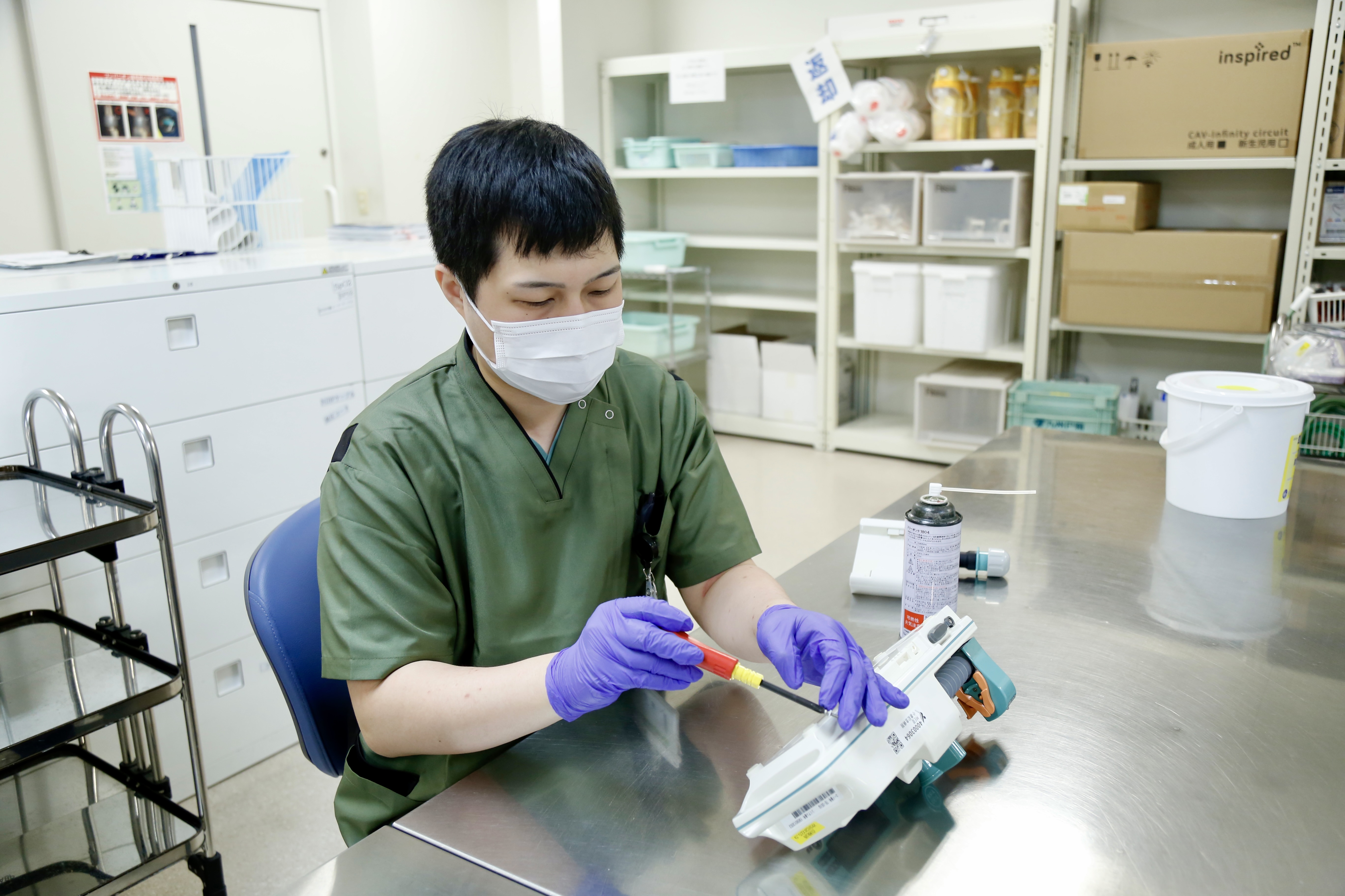 当院では、カテ室業務、透析室業務、人工心肺業務、手術室業務、ダヴィンチ業務、工学室業務、高気圧酸素治療業務など、臨床工学技士が関わる業務領域は非常に広く、多岐にわたります。責任の大きな業務が多く、現場では迅速かつ的確な対応が必要とされますが、その分、得られる経験は深く濃いものです。各分野での役割が明確にあり、自身の担当領域における専門性を高めていくことができます。業務は多岐にわたる一方で、それぞれが独立しているわけではなく、現場では複数の専門領域が連動して動いています。そのため、臨床工学技士には広い視野と柔軟な対応力が求められます。多様な業務を通じて、臨床工学技士としての幅を広げたい方にとって、非常に充実した環境です。