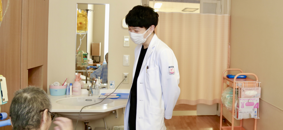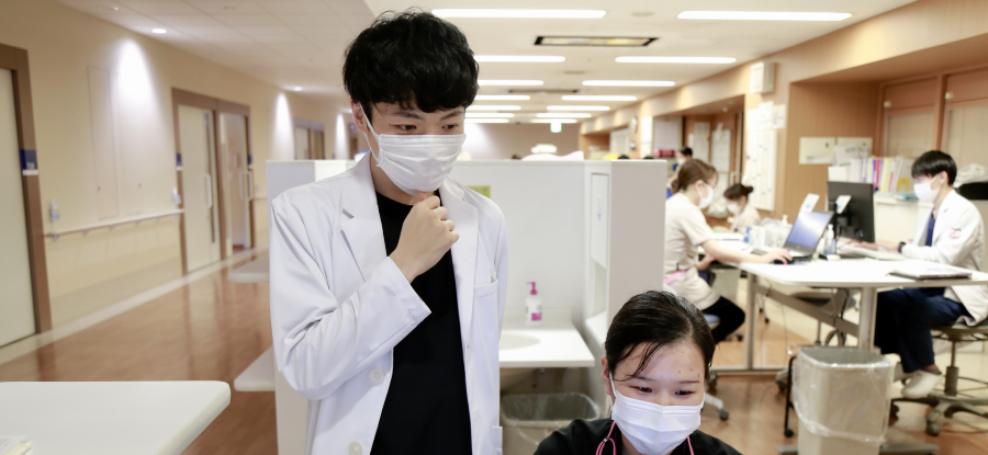 私は大阪で生まれ育ち大阪の病院で初期研修を終え、縁もゆかりもないこの北九州の地へやって来ました。それは、専攻医の殺到する大都会の人気病院では得られない主体的な研修を求めていたからです。確かに当院の内科専攻医の数は他院と比べると病床数ほど多くはありませんが、それは裏を返すと専門領域で主戦力として働くことができるということです。私が研修している血液内科は診断~入院~治療後のフォローまで患者さんと長い付き合いになることが多く、初診の時点で遠い先を見据えた方針を立てなければなりません。まさに知識や経験がものをいう世界なので自分の不勉強を自覚する日々ですが、上の先生方はそんな私を程よく放流してくれつつ困った時には必ず助けてくださります。恐らくこの環境が私にはとても合っているようで、苦にならない忙しさがそのまま充実感ややりがいとなって積み重なっていっているのを実感します。
