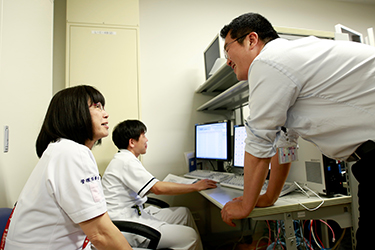 私は事務部、情報システム課に所属しています。仕事の内容はシステム導入から修理などのメンテナンスまでとなります。システム導入は高度な医療を実現するためのお手伝いをシステム面から行います。導入作業終盤は現場・SE共に過酷な作業となりますが、導入後の業務改善を目の当たりにした時も大きな喜びを感じます。また、保守メンテナンスは、目の前に患者さんがいて緊急を要する事もあり緊張感の漂う中での仕事となりますが、システム復旧後に「ありがとう」と言われると疲れも吹き飛ぶ瞬間です。社内SEの仕事とは泥臭い部分もありますが楽しい仕事です。