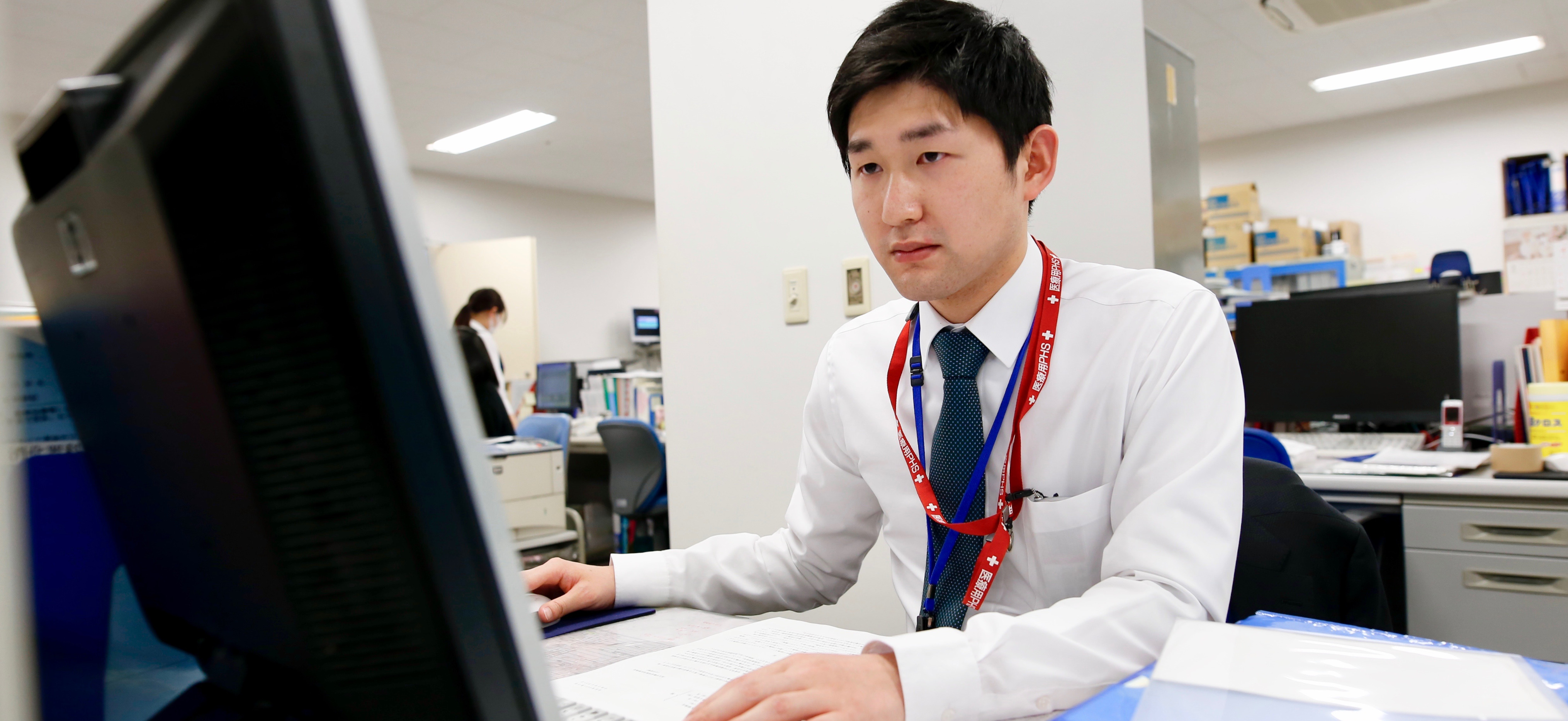 私は入職して医事課配属となり、ちょうど1年が経過しました。医療費を患者さんと審査機関へ請求する業務を担当していますが、診療報酬制度は複雑で、わからないことばかりです。しかし、保険手続きを患者さんに理解してもらえた時、ミスなく請求できた時など、「よかった」と、小さくても達成感があります。さらに、業務を通じて、患者さんや一緒に働く方々に「ありがとう」と言っていただけることがあると、うれしい気持ちになります。