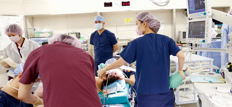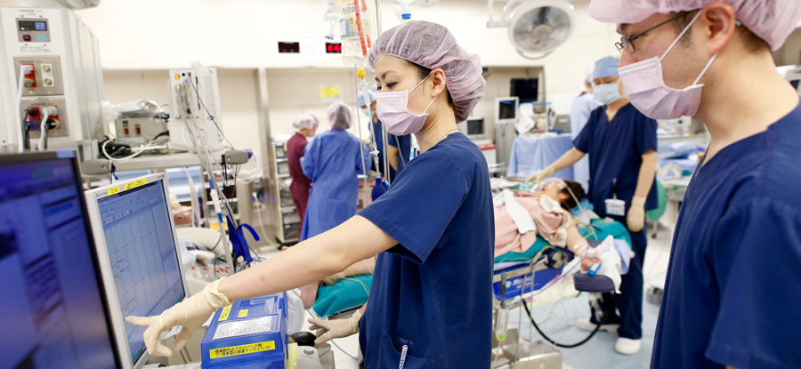 心臓血管麻酔はもちろんですが、心疾患、脳血管疾患を合併した非心臓手術など、ハイリスク症例の麻酔、ICUでの術後管理に携わることができることです。最初は、自信がなく、不安も大きかったです。当院麻酔科は必ず2人以上で麻酔を担当するシステムとなっており、しっかりとした指導体制が整っています。今では、「一人で出来なくてもいい、皆の助けを借りながら一歩一歩進んで行けばいい。」という気持ちになりました。専門医試験を終えた後からは、後輩達の指導に少しずつ携わることができるようになって、それもやりがいを感じていることの一つです。