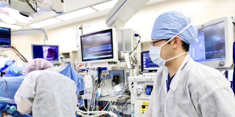 麻酔科医1年目で開心術の麻酔を20例ほど経験できています。9月頃から上級医がする心臓麻酔を見学し始めました。日々の空いた時間を利用して経食道心エコーを操作させてもらい、心臓麻酔を行うための準備を進めていきました。心臓麻酔チームの先生たちが作成した心臓麻酔手順書もあり、術前準備・麻酔導入・術中管理についてより深く学ぶことができます。知識と経験に富んだ上級医に入室から退室まで付きっきりで指導してもらえ、症例ごとにフィードバックももらえる環境で非常に充実した研修生活を過ごしています。