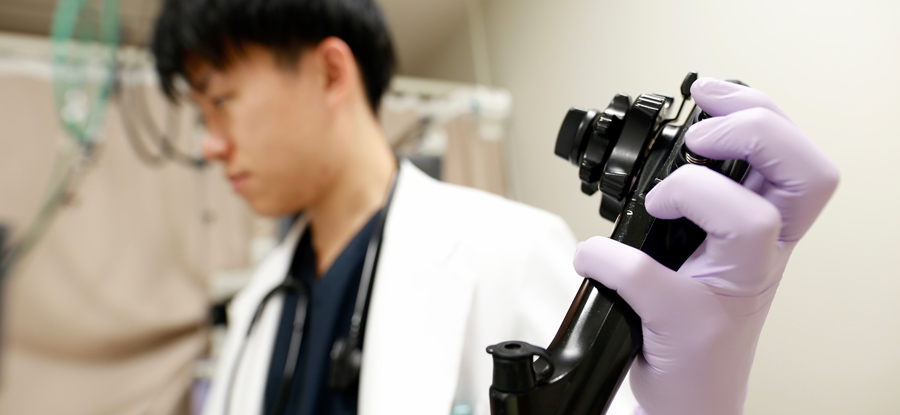 当院は北九州市の中核となる急性期病院であり、数多くの症例を経験できます。多くの患者さまが重篤な心疾患や脳疾患、慢性腎不全などを抱えているため、併発する急性期の消化器疾患に対する内視鏡治療に難渋したり、治療方針の決定に悩まされることに多々遭遇します。そのような中で要求される判断力、冷静かつ迅速な対応力は自然と身についていくものであり、問題を解決に導いた際の達成感は他の病院では味わえない経験であると実感しています。