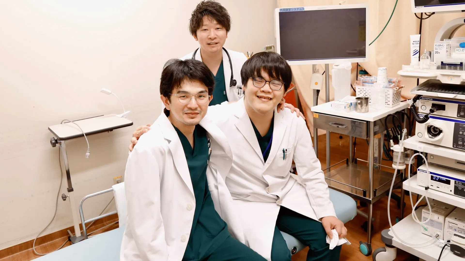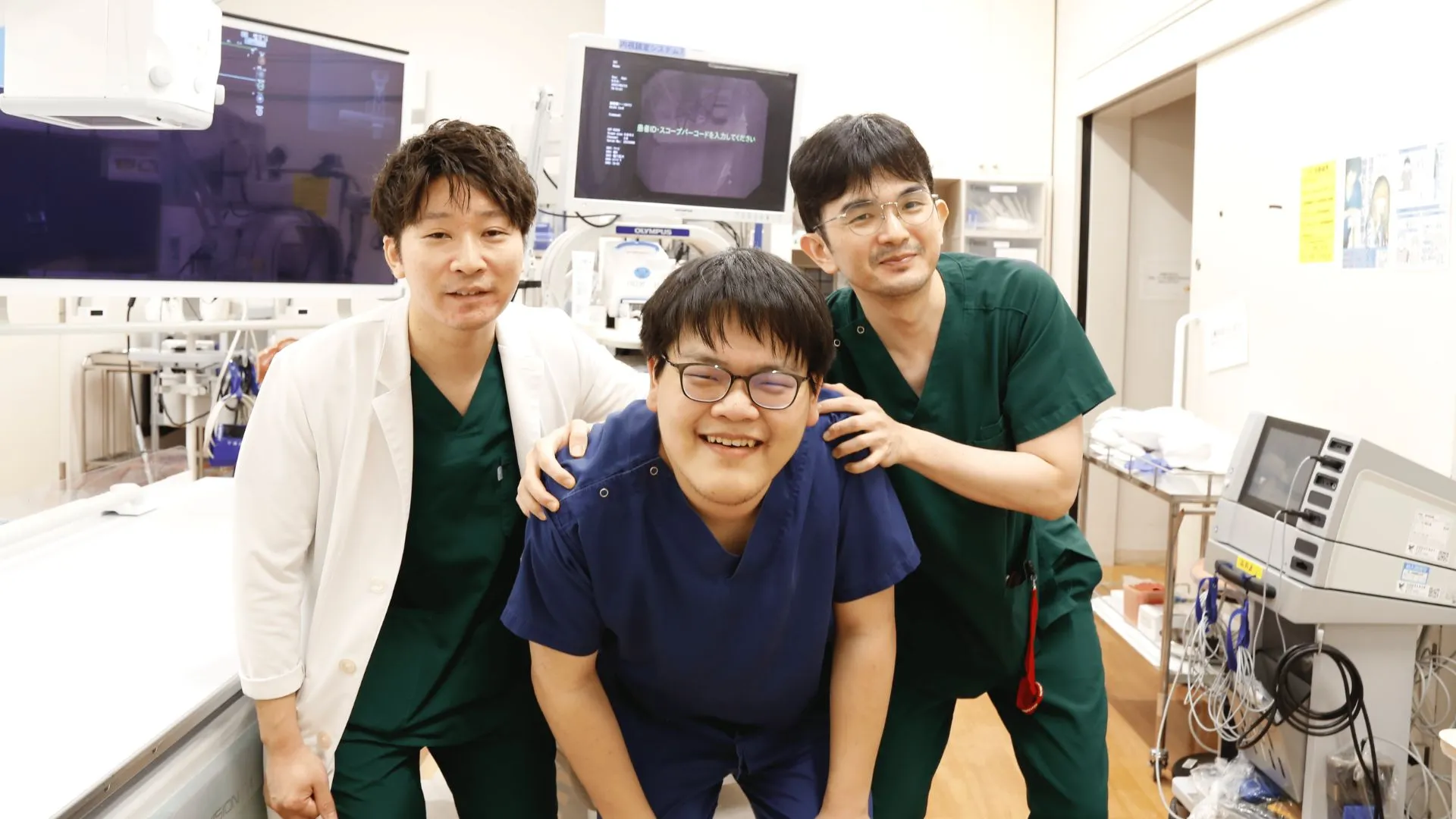 在籍している医師も多様で、卒後3年目の内科専攻医をはじめ、大学医局に属さず様々な施設で研鑽を積んできた若手スタッフ、消化器疾患・内視鏡治療に興味を持ち他科からキャリアチェンジしたスタッフが中心となって活躍しています。内科専門医を含めた専門医の取得支援や、消化器疾患・内視鏡分野でのさらなるスキルアップを目指す方にも柔軟に対応できる体制が整っています。消化管疾患だけでなく、胆膵疾患、肝疾患まで幅広く経験できます。少しでもご興味をお持ちいただけたら、ぜひ一度、見学にお越しください。心よりお待ちしています。