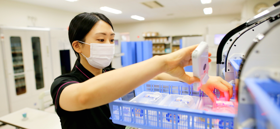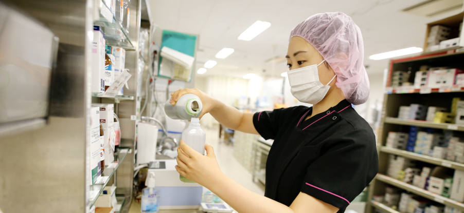 小倉記念病院では、各病棟に担当薬剤師が1名常駐しており、調剤室と病棟で業務が分かれています。私は現在、調剤室で業務を行っています。そのため患者さんと接する機会が少なく、カルテから得られる情報は限られていますが、病棟薬剤師と情報を共有し、より良い薬物療法を行えることにやりがいを感じます。薬剤部の先輩方は知識豊富で、一人で多くの患者さんを担当しているにもかかわらず、服薬状況だけでなく患者さんの全体像を常に把握し、調剤室と病棟の架け橋になってくださっています。
