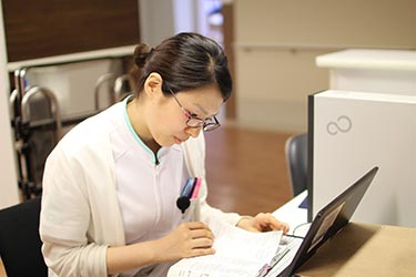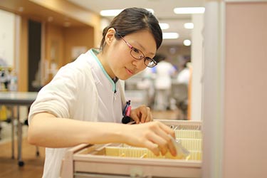 大学卒業後、地元である小倉で就職したいと考えていました。小倉記念病院では、早くから薬剤師の病棟業務に力を入れており、見学の際、病棟で活躍されている薬剤師の方々の話を聞いて、共感を覚え感銘を受けました。今こうやって同じ職場で働くようになり、益々先輩方の偉大さを実感しています。私も、将来そのように後輩から目標とされるような薬剤師を目指しています。