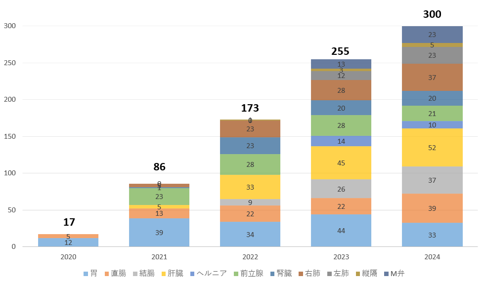 年度別 領域別ロボット支援下手術件数推移