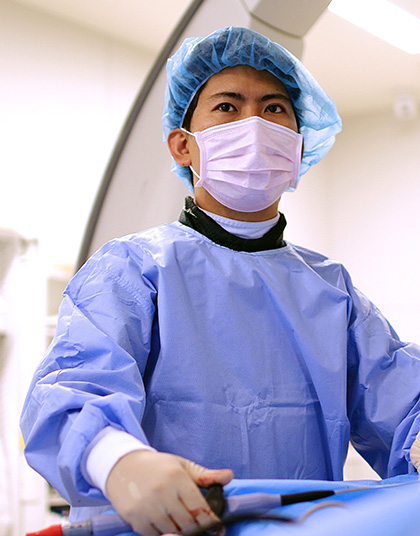私は、心臓血管内科医として心血管、末梢血管に対する血管内治療を専門とし診療を行っています。部長先生方のご指導の下、多くの患者様の血管内治療を経験させていただきました。